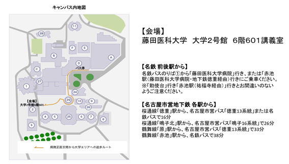 藤田医科大学 〒470-1192愛知県豊明市沓掛町田楽ヶ窪1番地98